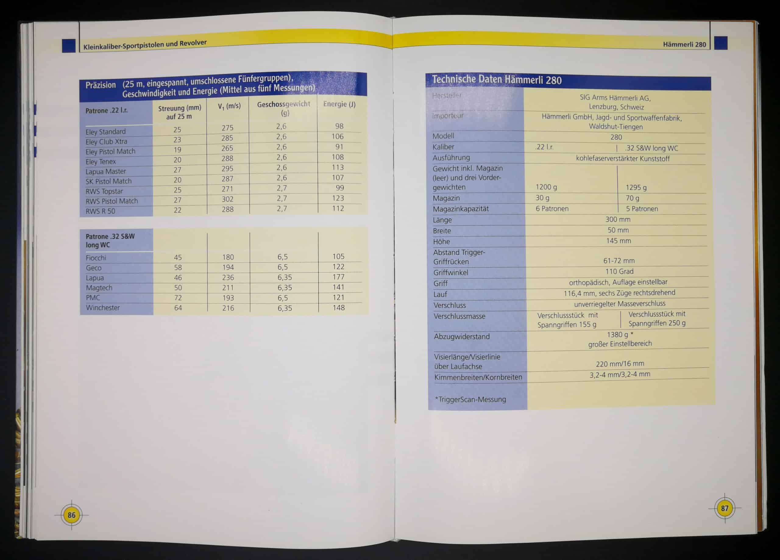 ieses Buch hier befasst sich ausschliesslich mit Sportpistolen – den typischen Rand- und Zentralfeuerpistolen, die auch in der Schweiz, besonders aber in Deutschland und auch international in Gebrauch sind. Nicht nur werden die geläufigsten und beliebtesten Sportpistolen und -revolver detailliert vorgestellt, auch an technischen Daten, Angaben zur Präzision und sogar Tabellen zum Abzugsverhalten mangelt es nicht. So ist das Buch schon konsequent aufgebaut und die Pistolen lassen sich miteinander vergleichen.